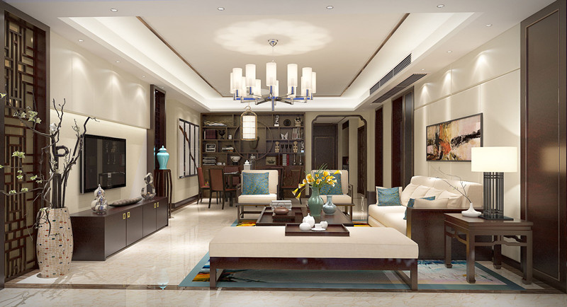 • 新中式風格三居海畔藍庭